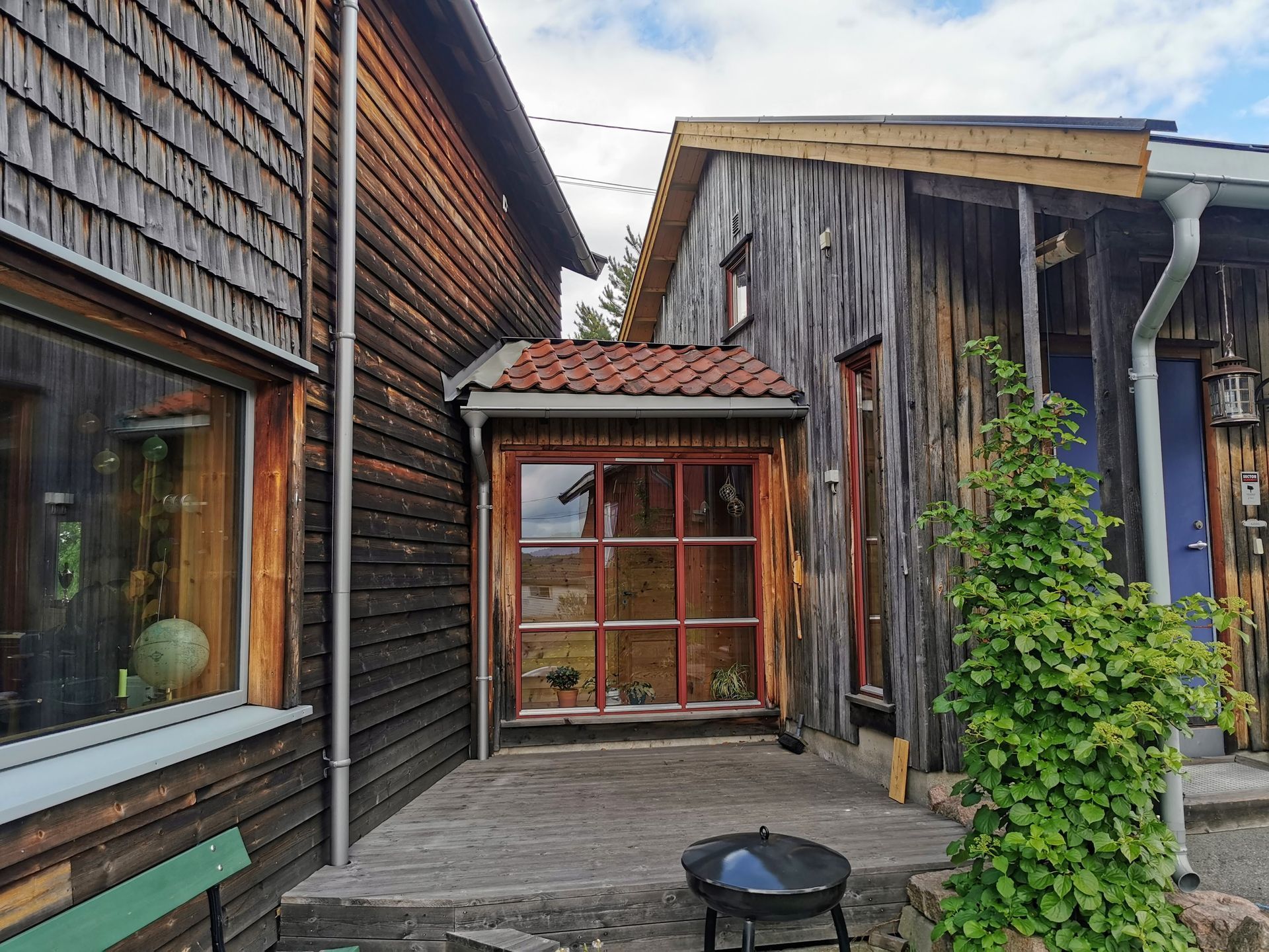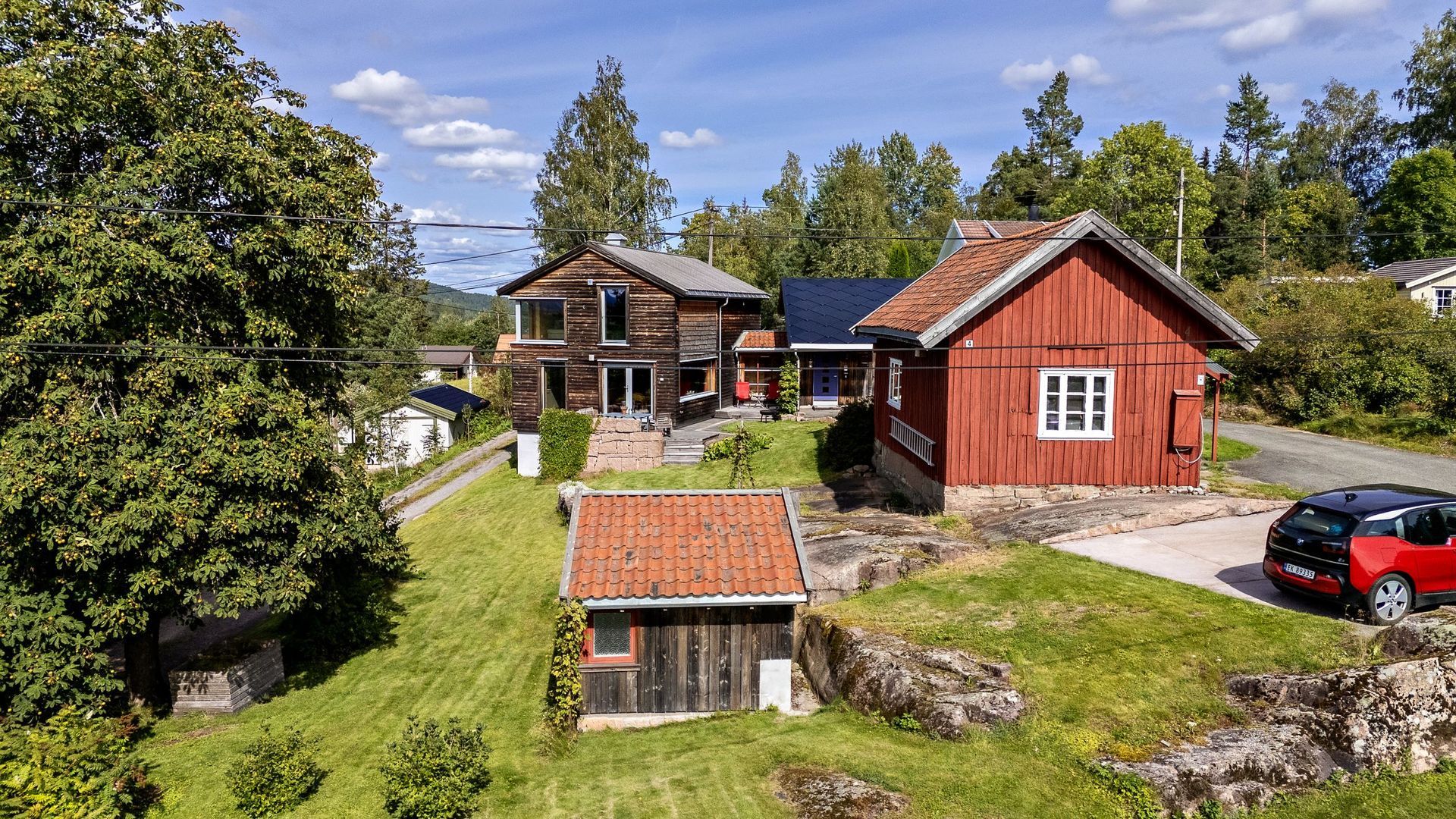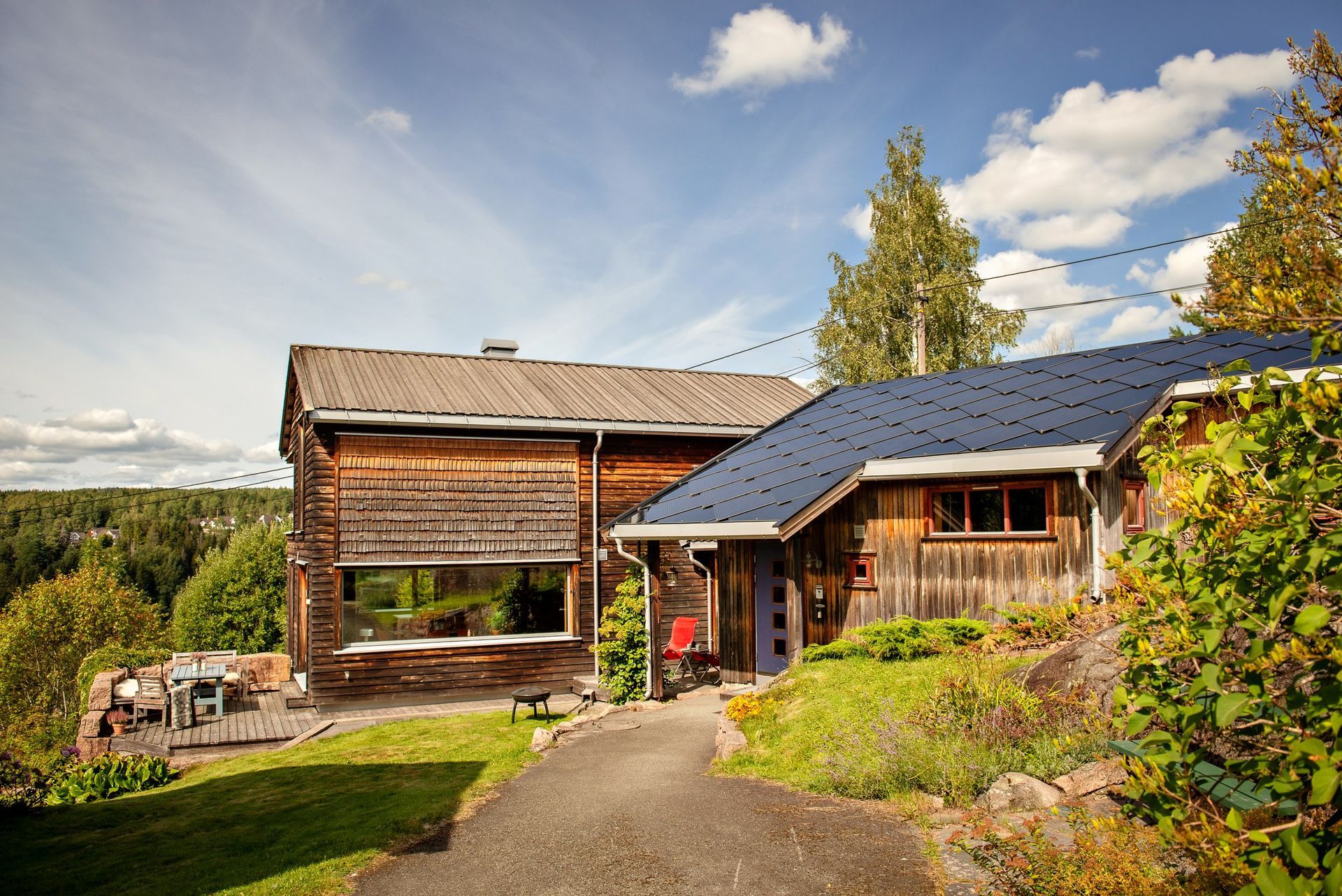 Enebolig bygget i to trinn (200 og 2010). Bebyggelsen er tilpasset tomt og terreng med flere nivåer. Mest mulig vedlikeholdsfrie materialer. Solcelletakstein på den ene delen. Den nyeste delen er bygget i massivtre.