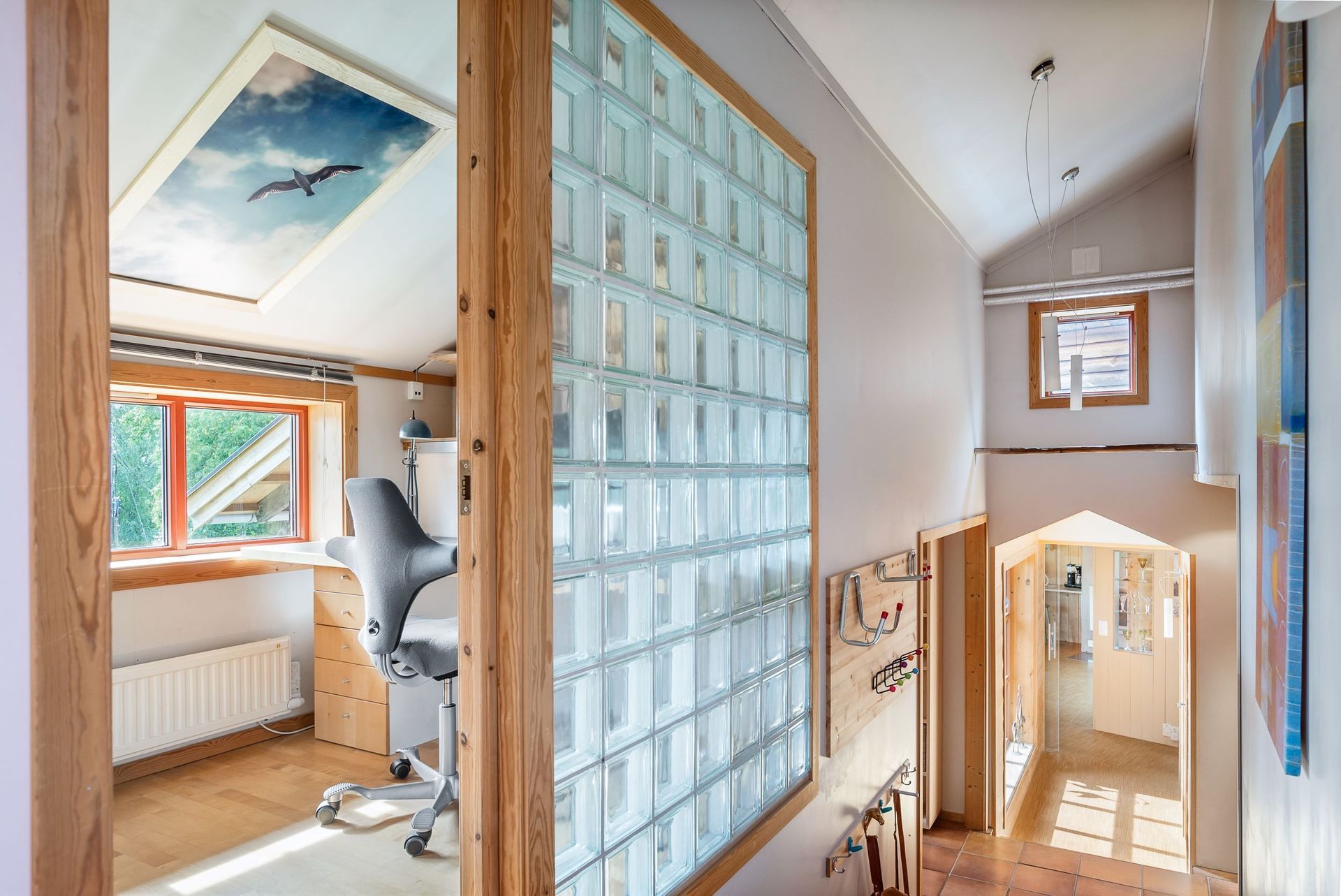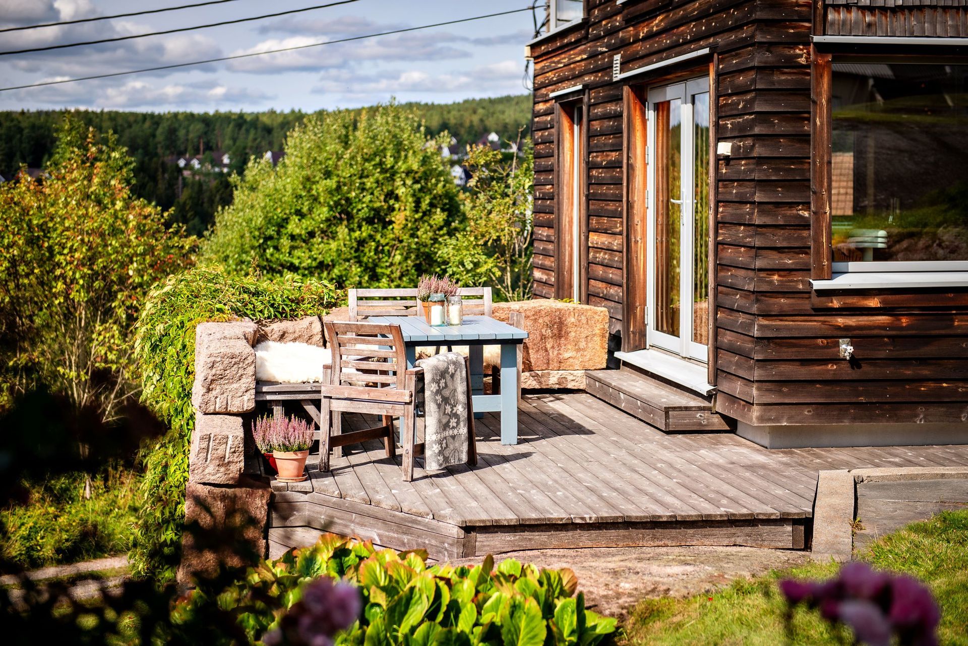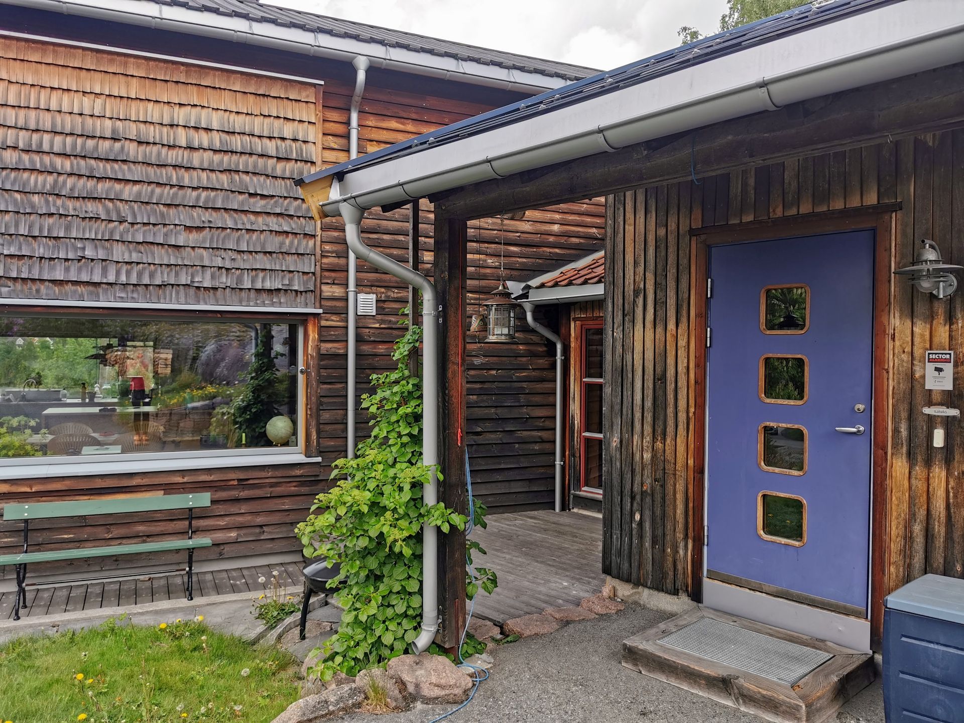 Enebolig bygget i to trinn (200 og 2010). Bebyggelsen er tilpasset tomt og terreng med flere nivåer. Mest mulig vedlikeholdsfrie materialer. Solcelletakstein på den ene delen. Den nyeste delen er bygget i massivtre.